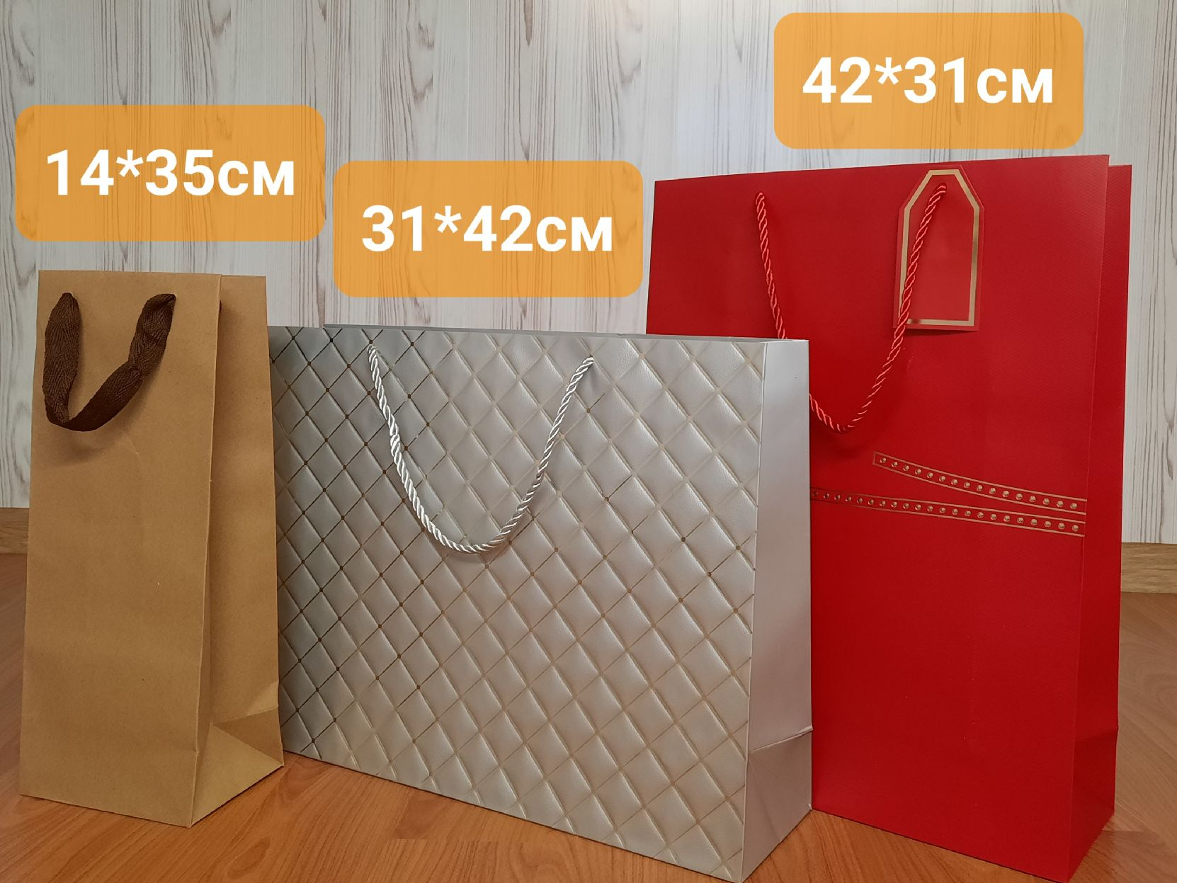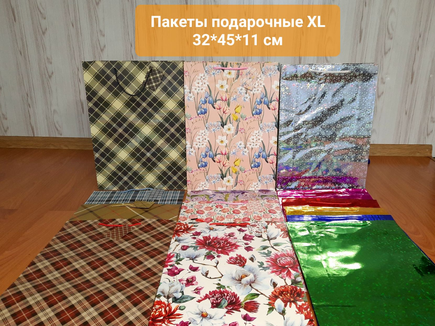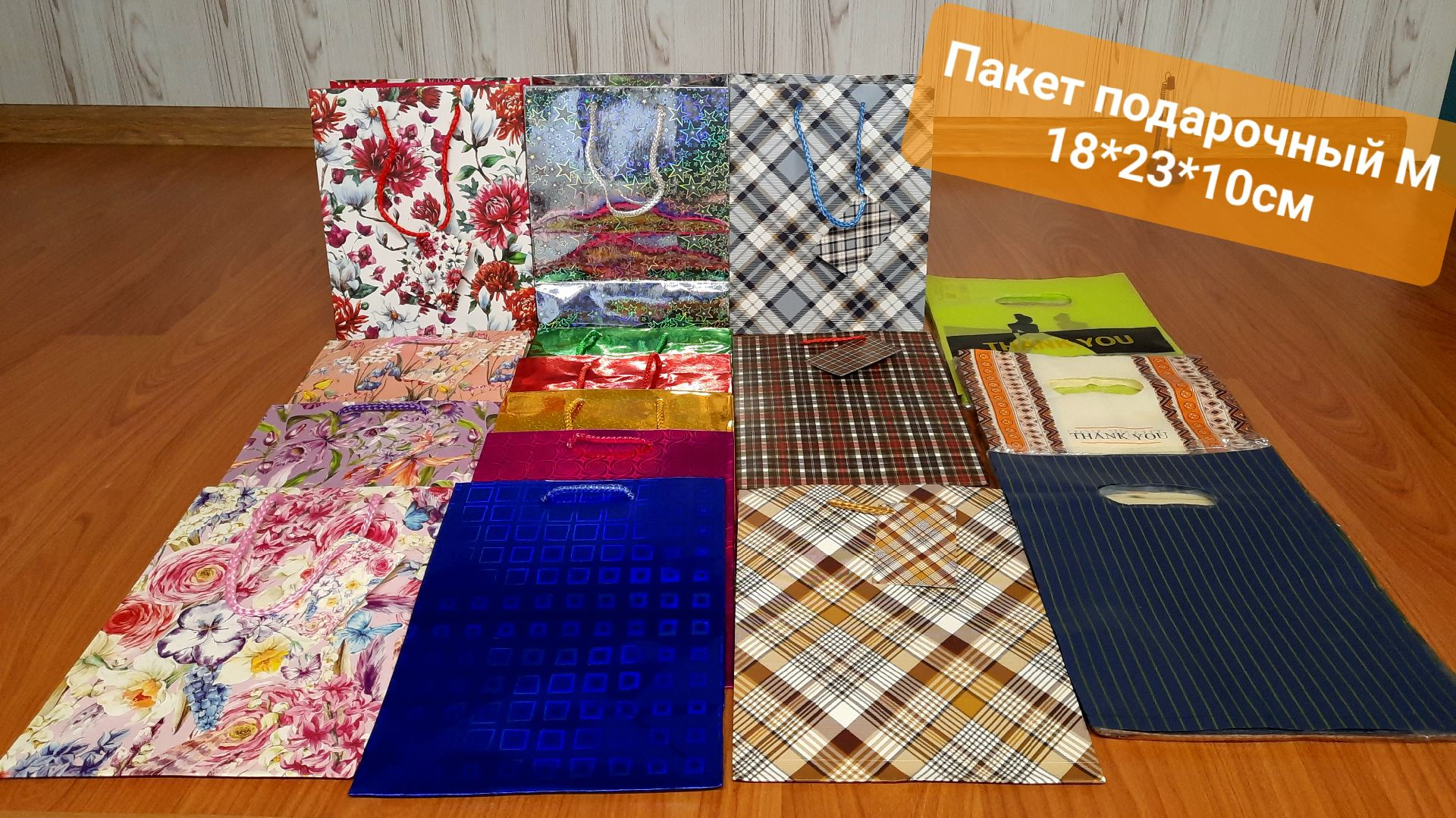 В продаже широкий ассортимент подарочных пакетов разных размеров, оберточной бумаги и пакетов с петлевой и прорубной ручкой