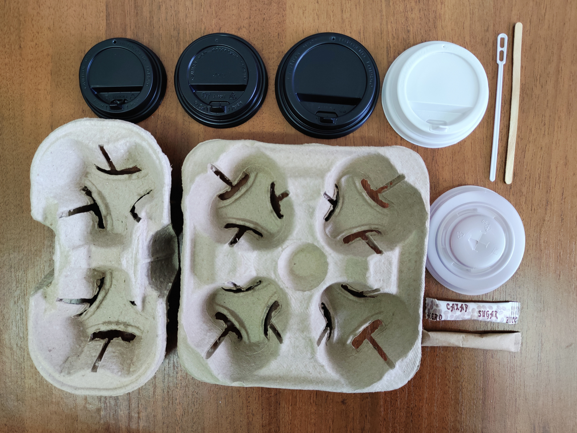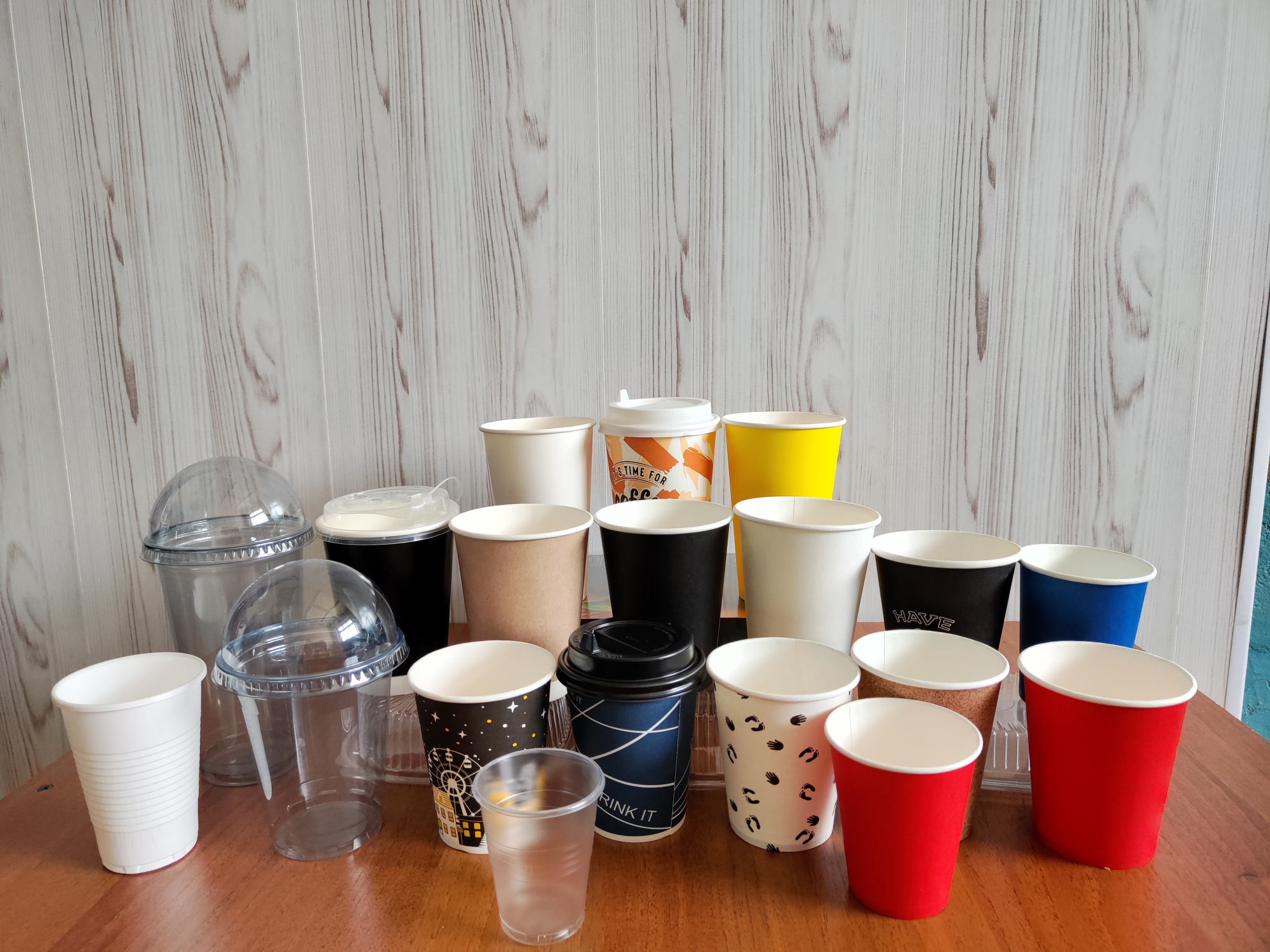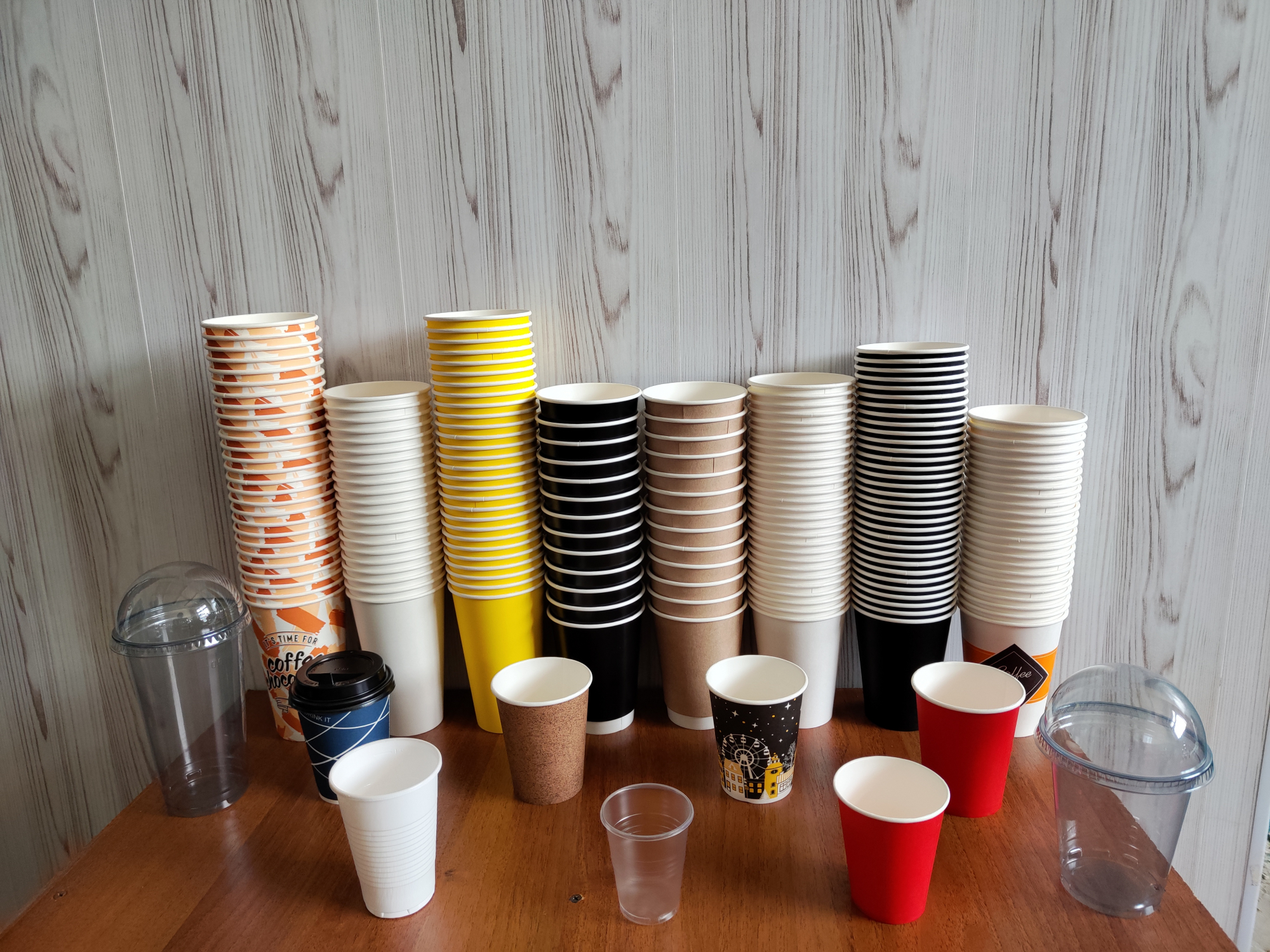 Стаканы одноразовые бумажные, пластиковые, переноски крышки.